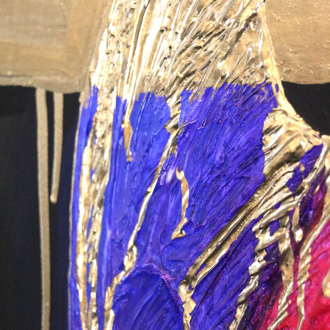 У картины свой неповторимый рельеф. Он создается вручную воском и акриловой пастой. Таким предметом интерьера можно не только любоваться на расстоянии, но и чувствовать его изображение прикосновением.
